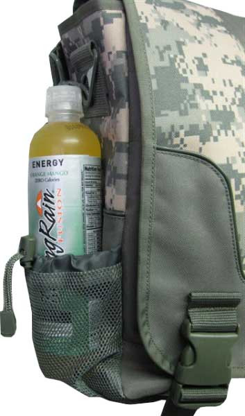 - Mesh pockets on both ends for water bottles, coffee tumblers, etc.